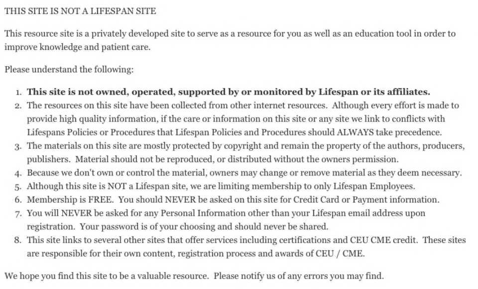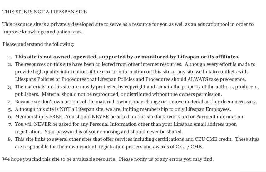 Welcome to our Registration Page.  Please Register using your Lifespan Email Address as you will receive a confirmation link in your Lifespan Email.